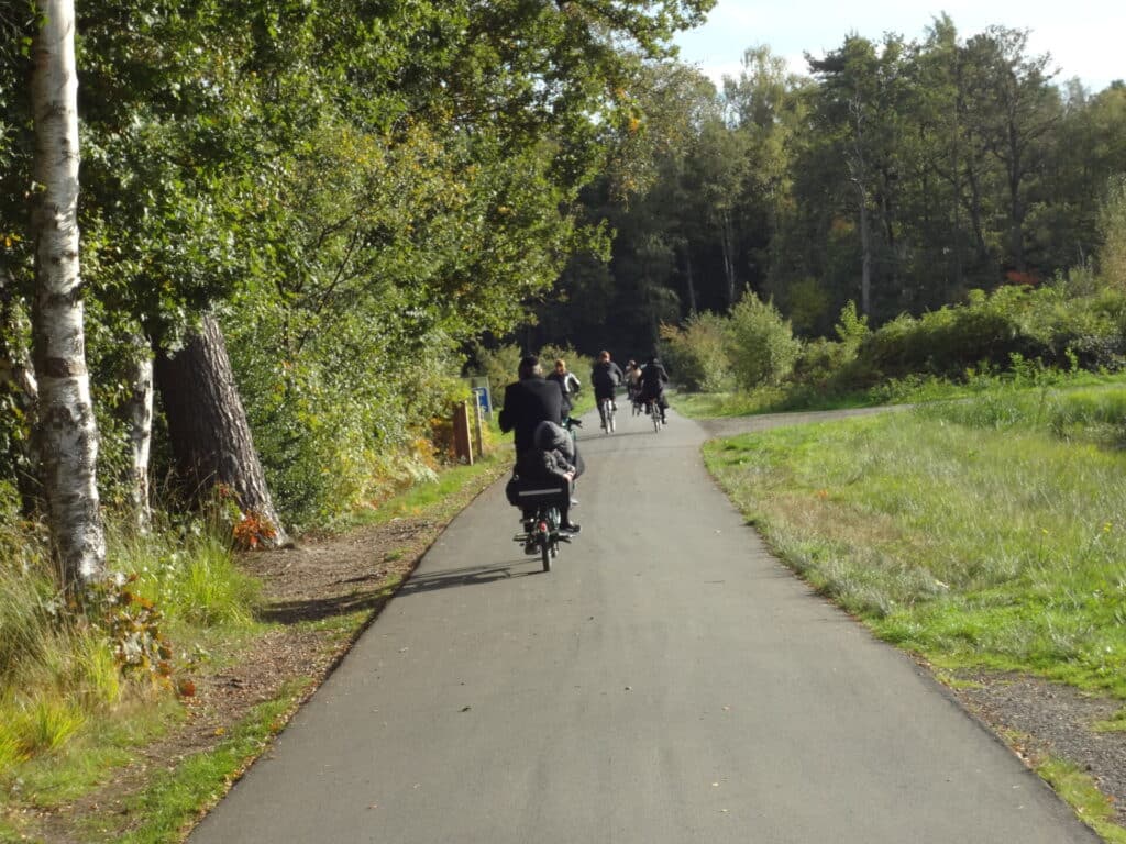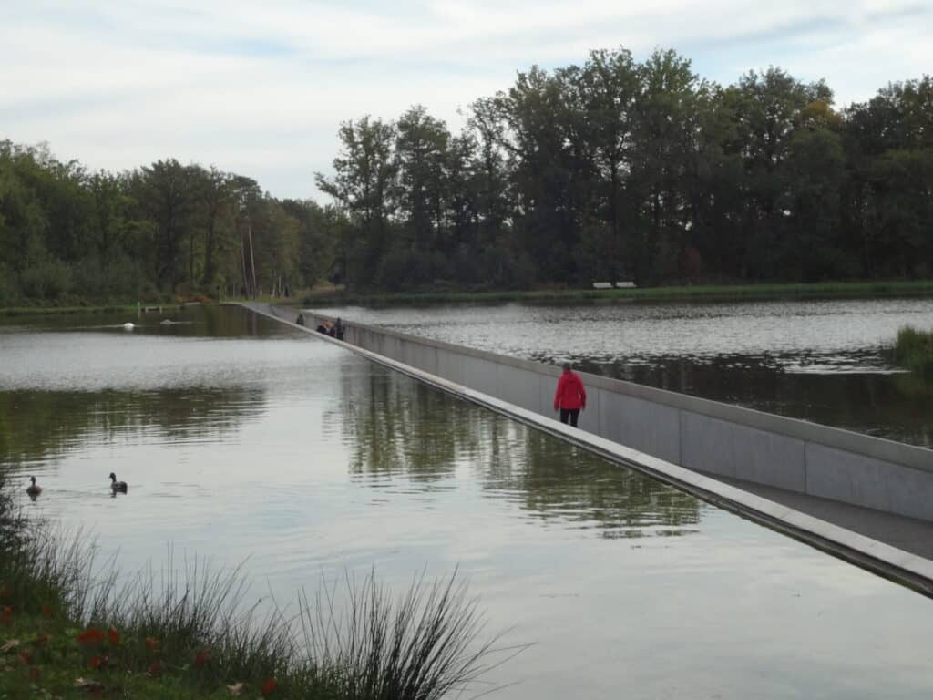 The bike rental on site has a variety of options. There are bike paths that lead out of the Bokrijk Park to the surrounding area. The path we took goes through the woods and leads to the most amazing paved path through the water. It literally feels like biking through the water. The geese were leaning over the side to the people looking for food. Once we crossed over we continued on the path until we returned to the entrance of Bokrijk where we returned the bikes.