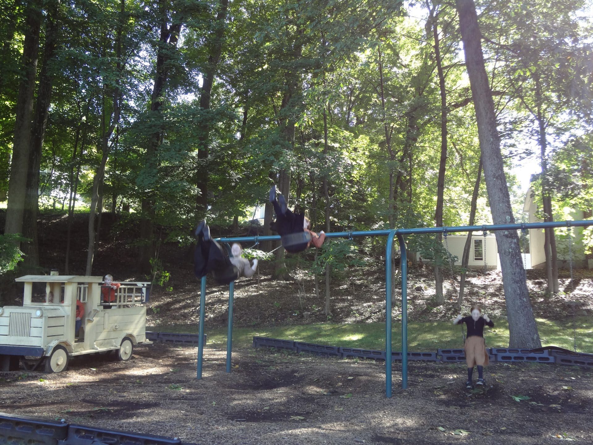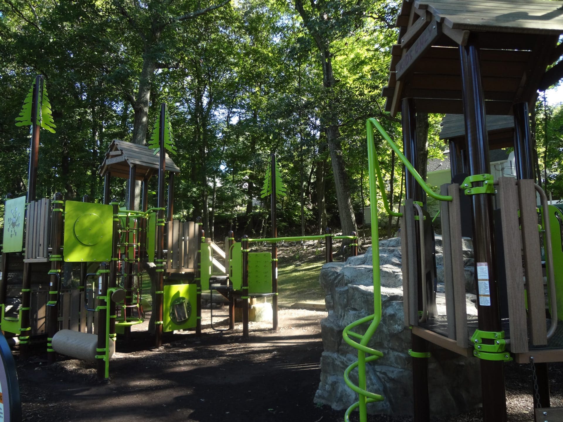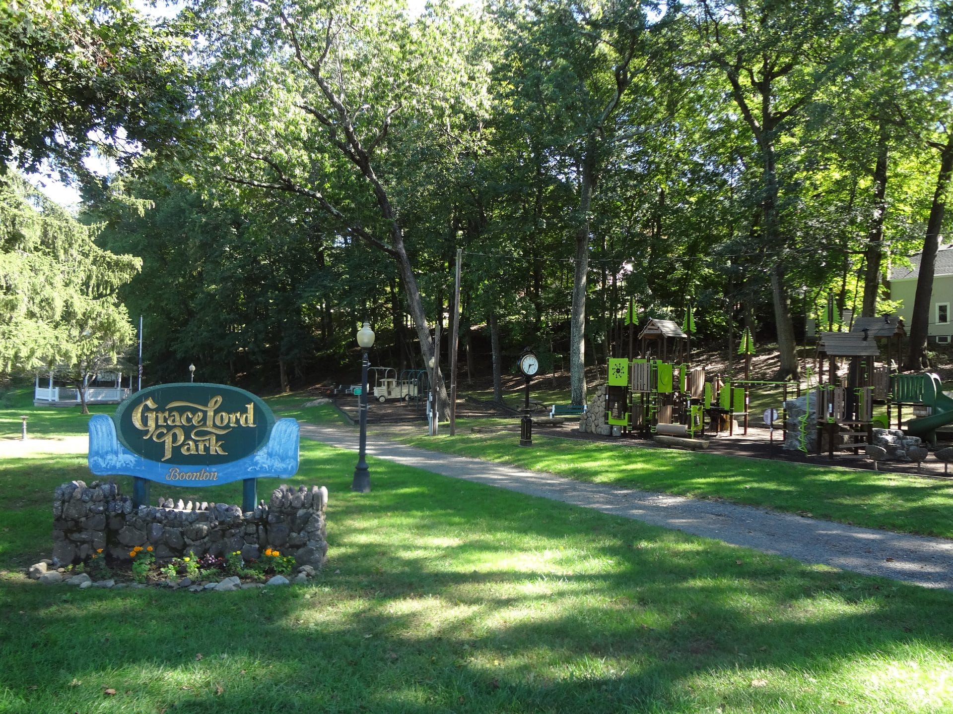 We went bowling at Boonton Lanes on a warm fall day. We also wanted to catch some fresh air so we looked for a park in town. Grace Lord Park appeared to be a cute playground designed adorably with a nature vibe. The park does not have a parking lot so we parked across the street at the side of the gas station (with the permission of the attendant.) There is some street parking nearby if you can find a spot.