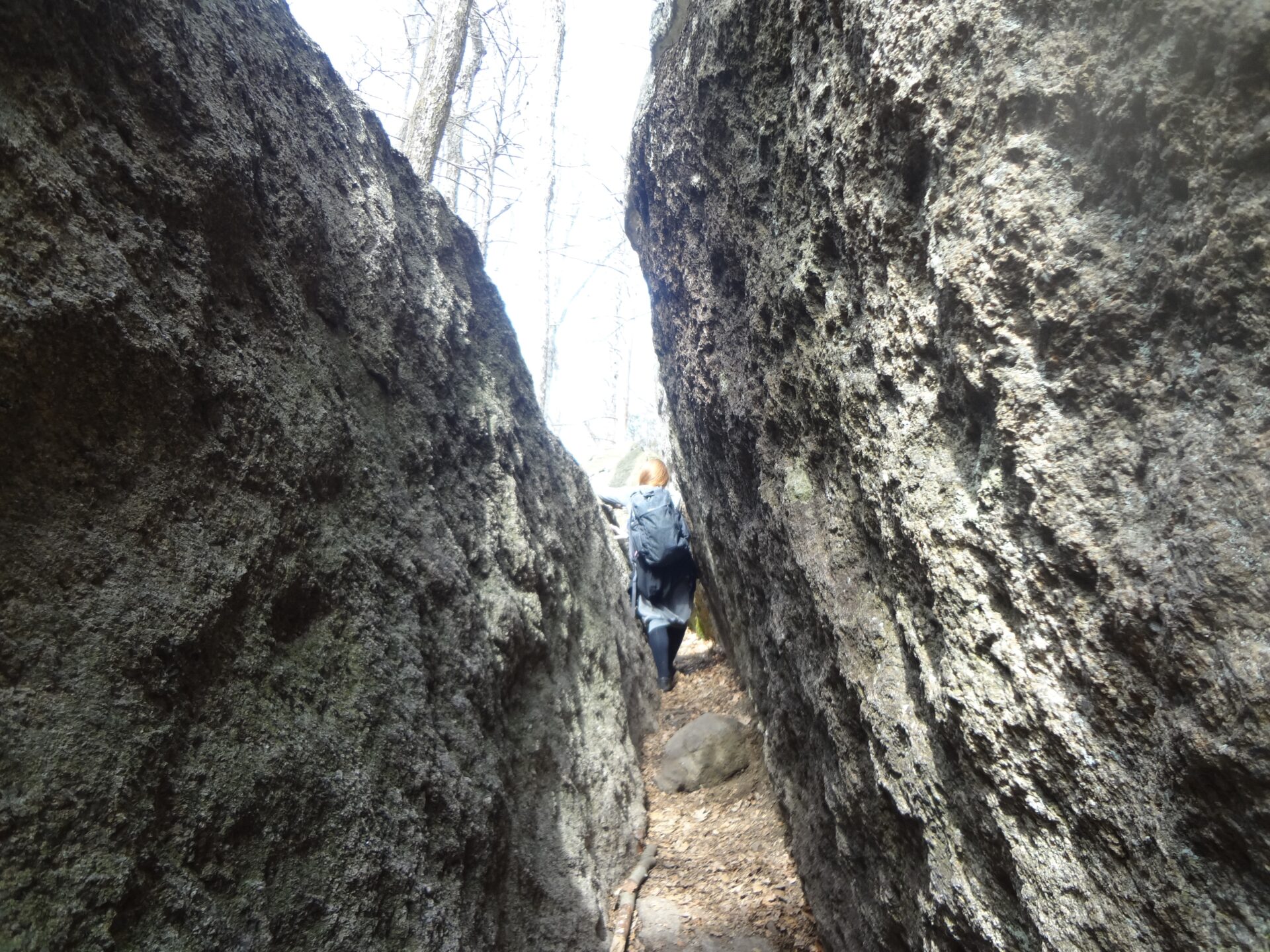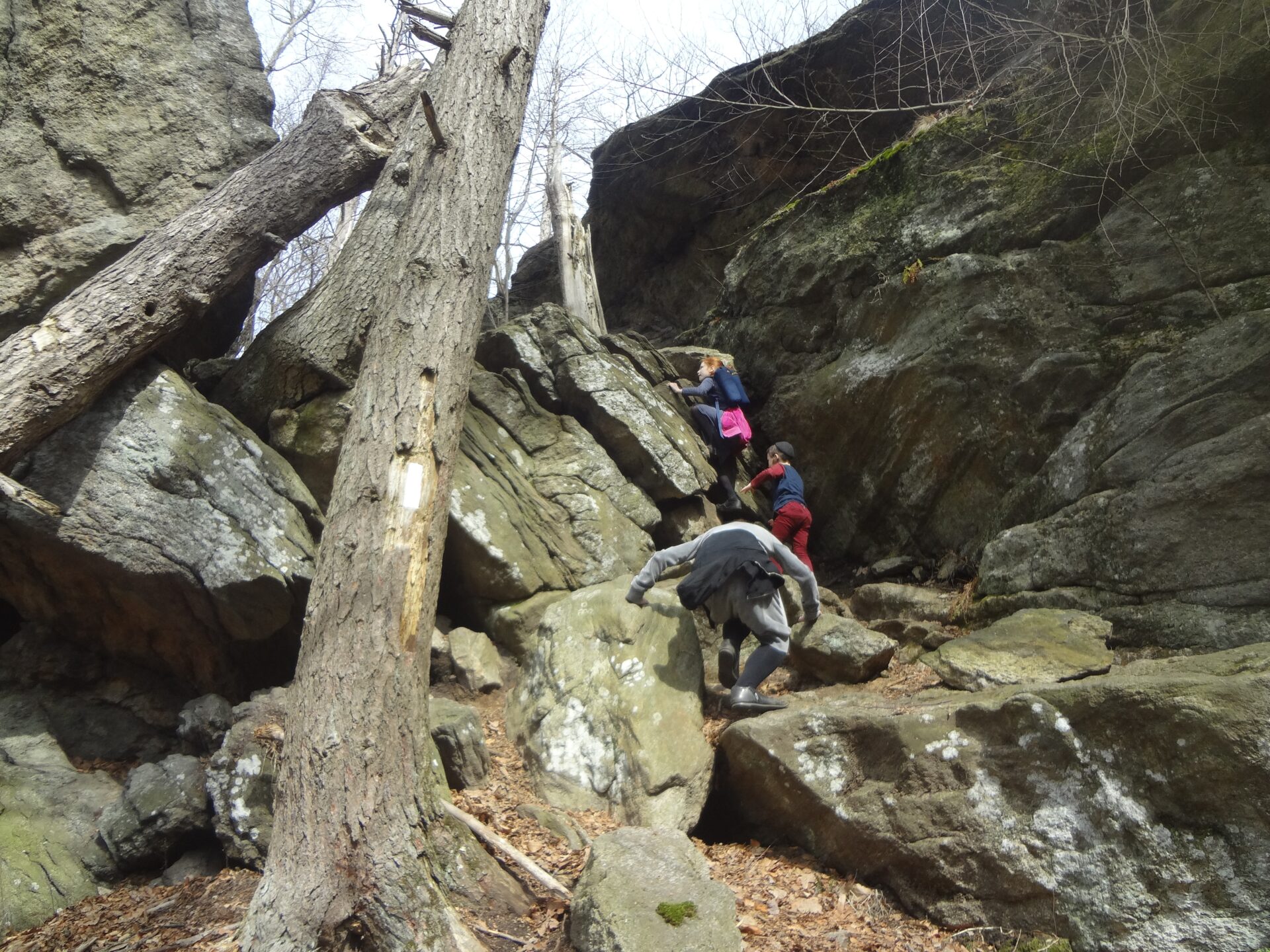 We parked at the Elk Den lot which was full of cars although there are so many trails that we weren’t in close proximity with others. We entered the path marked with white markers that took us onto the Appalachian Trail. We went in the direction of the Lemon Squeezer following the white markers all along. There was lots of uphill climbs with some downhill scattered in as well. The climb was not difficult but not extremely easy either. We enjoyed a view of the beautiful Island Pond on the way. After we crossed over a service road to continue on the white trail, as we neared the lake we went off the path for a minute to get a closer view without trees obstructing our sight.