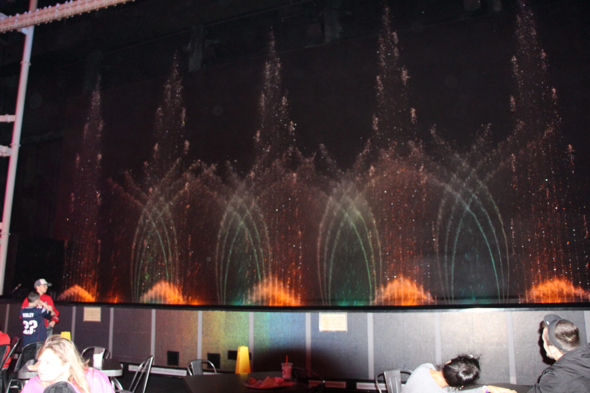 There are the most awesome liquid fireworks consistently choreographed to the music and lights with over 1,000 water nozzels. The water show is remarkable. The water works are placed below one of the 45 foot zip lines. Visitors try see if they can cross without getting wet. No guarantees, the water may dance higher just at that moment.