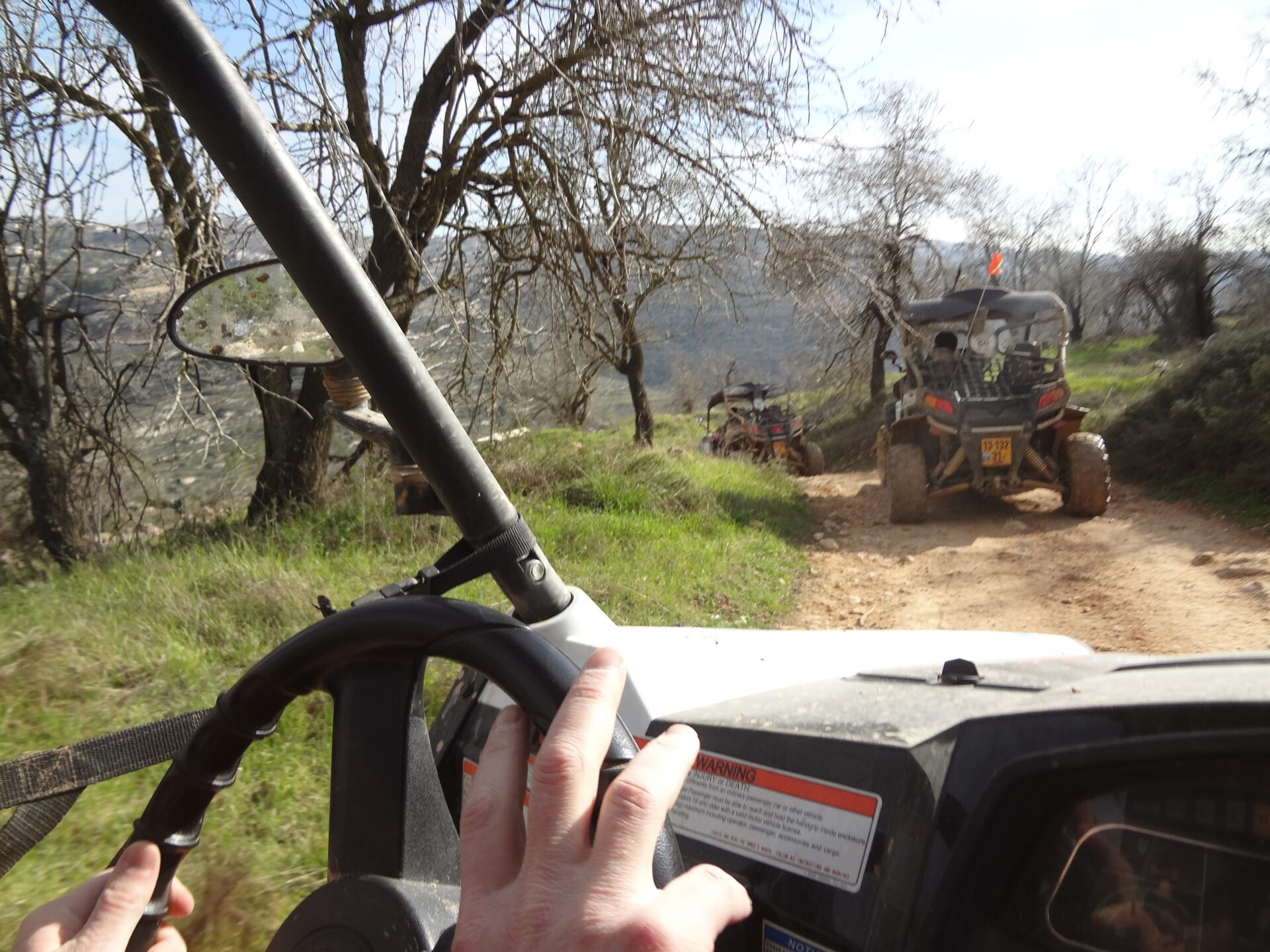 The ATV’s go out together in a group, witha leader showing the way and pace. We went on the tour a few days after it rained, so the paths were strewn withpuddles, and we got all splattered with mud– which was all part of the fun. Jerusalem ATV Adventure supplies goggles for anyone that wants