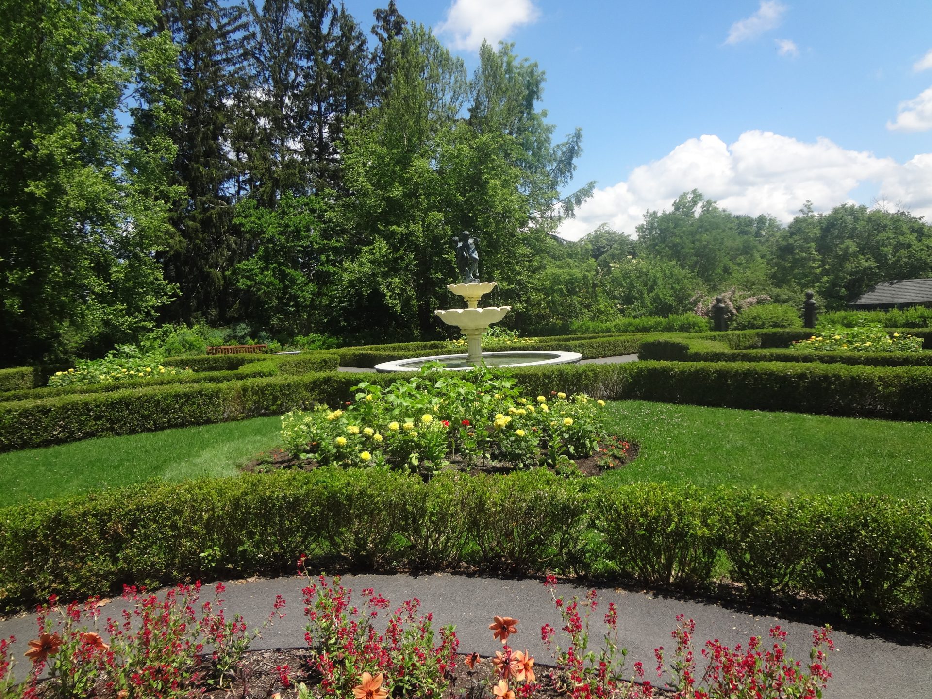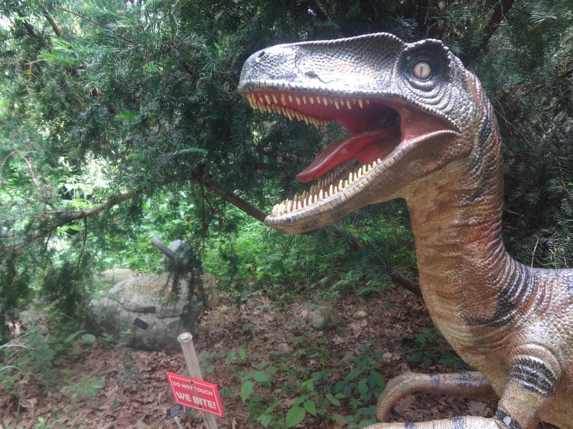 We entered the park opposite the pretty Lasdon Memorial Garden which boasted a fountain in the center with a statue of two children playing on top. We continued toward the greenhouse and museum which was closed when we visited so we headed up to the popular dinosaur garden an area of the garden that has many large dinos placed around the garden.