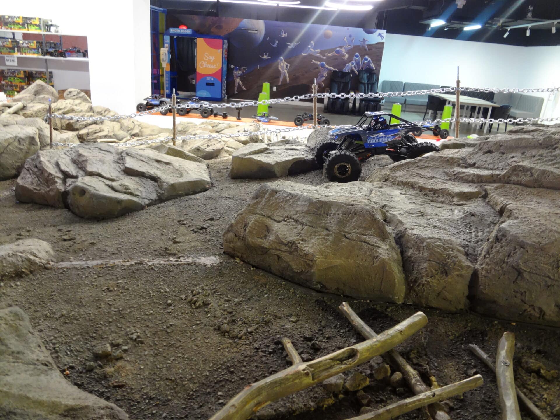The Rock Crawlers are super cool remote-control trucks that ride over hills and rocky terrain. The Battle Bots are remote control robotic tanks that are used in a game of remote-control war with the tanks.