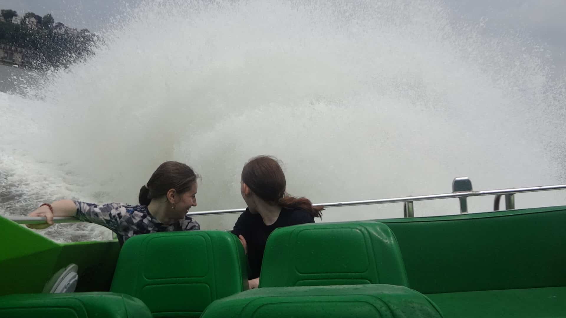 Once everyone got their photos taken, we started heading back. Since we had already seen the sights, the captain gave us a great time, swerving and turning to make the ride more fun. At times the waves came crashing over the back rail and we got soaked! The rest of the passengers didn’t get away scot free. The crew member used a water gun to tease some of the dry passengers. It was lots of fun!